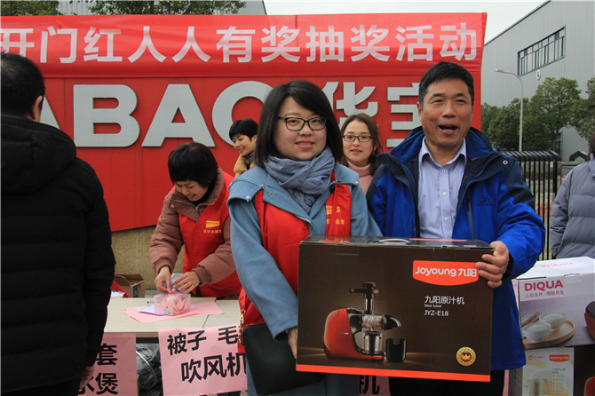 華寶公(gong)司(si)為了迎接(jie)和感(gan)謝2018年的(de)(de)辛勤付出(chu)及時返崗的(de)(de)員工(gong),在董事長(chang)胡仁寶先(xian)生(sheng)的(de)(de)親自帶領(ling)下(xia),公(gong)司(si)為員工(gong)精心準備(bei)了豐厚的(de)(de)獎(jiang)品:大到面條機、掃地機、電飯(fan)煲,小到被(bei)子、毛毯、背包、四件套(tao)、開水(shui)煲、電吹風、雨傘等等只要到場便人人有獎(jiang)。