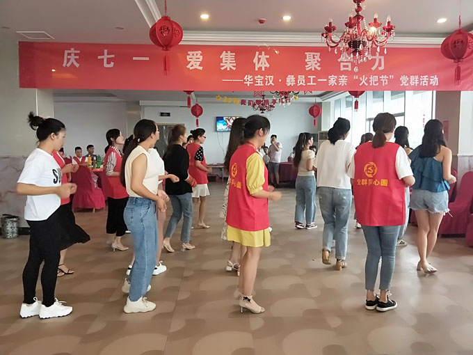 在中(zhong)(zhong)國共產(chan)黨成立98周年之際(ji),為了(le)(le)提(ti)倡(chang)廣大(da)員(yuan)(yuan)(yuan)工愛(ai)國家(jia)(jia)、愛(ai)集(ji)體、愛(ai)家(jia)(jia)庭的(de)良好風氣,匯聚(ju)起員(yuan)(yuan)(yuan)工敬崗愛(ai)業(ye)、認真(zhen)干事正能量,同時為了(le)(le)關愛(ai)、豐富員(yuan)(yuan)(yuan)工的(de)業(ye)余生(sheng)活(huo),華寶公司黨支部、工會聯合行政中(zhong)(zhong)心、供(gong)應鏈管理中(zhong)(zhong)心組織主(zhu)題為:慶七一(yi)(yi) 愛(ai)集(ji)體 聚(ju)合力(li)一(yi)(yi)一(yi)(yi)華寶漢·彝各(ge)族(zu)員(yuan)(yuan)(yuan)工一(yi)(yi)家(jia)(jia)親“火把節”黨群活(huo)動,參加活(huo)動的(de)有少數民族(zu)員(yuan)(yuan)(yuan)工70多人以及全體黨員(yuan)(yuan)(yuan)、各(ge)車間主(zhu)管級(ji)以上和后勤人員(yuan)(yuan)(yuan)等,總計(ji)參加人數近百人,讓少數民族(zu)同胞感受到了(le)(le)黨的(de)溫暖,家(jia)(jia)的(de)歸屬感!